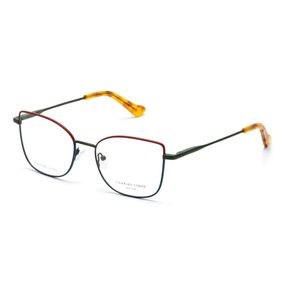 Charles Stone 30110 eyeglasses feature a sleek semi cat-eye design in lightweight stainless steel. Stylish, comfortable, and prescription-ready—perfect for everyday elegance.