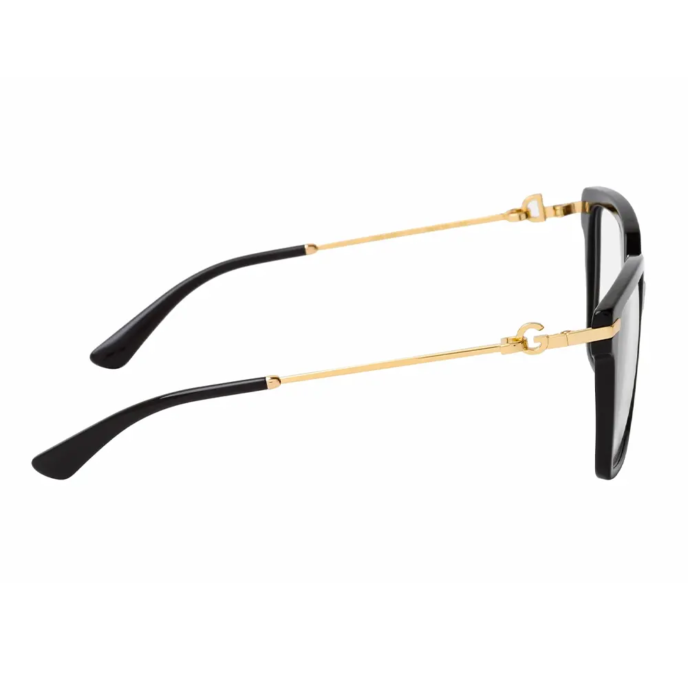 A standout feature of this model is the new DG crossed logo—a striking emblem of Dolce & Gabbana’s modern identity. The logo showcases interlocking ‘D’ and ‘G’ letters, cleverly designed to reveal one letter from the side and the other from above, creating a sculptural, three-dimensional effect that adds depth and luxury to the temple detailing.