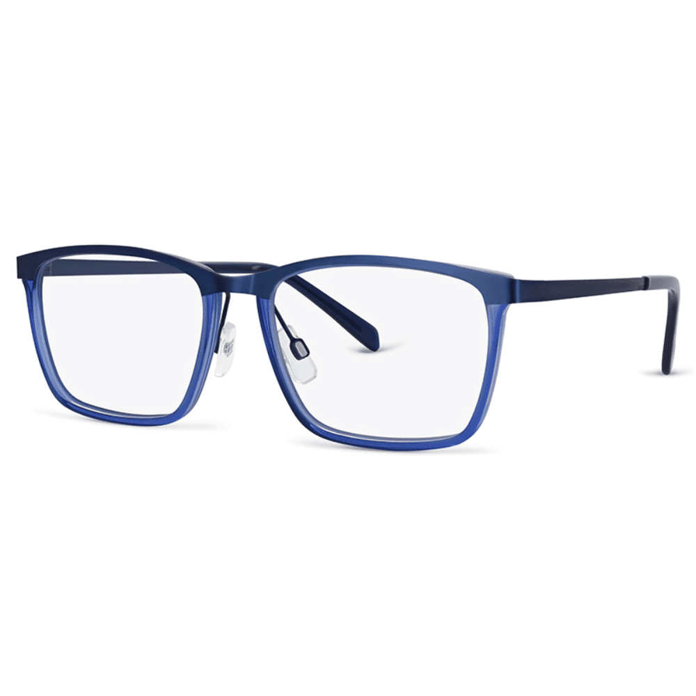 A classic squarel shape is updated with an innovative dual-construction design featuring a contemporary combination of stainless steel and acetate.