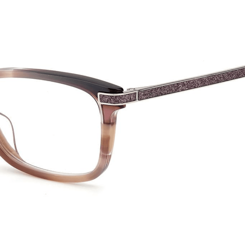 The JC268/G stands out with its glitter-infused temples, adding a subtle shimmer that catches the light without overpowering your look. The classic rectangular silhouette ensures timeless appeal, while the durable construction makes them ideal for daily wear. Available in elegant colourways like Dark Havana and Rose Gold, these frames effortlessly blend fashion and function.