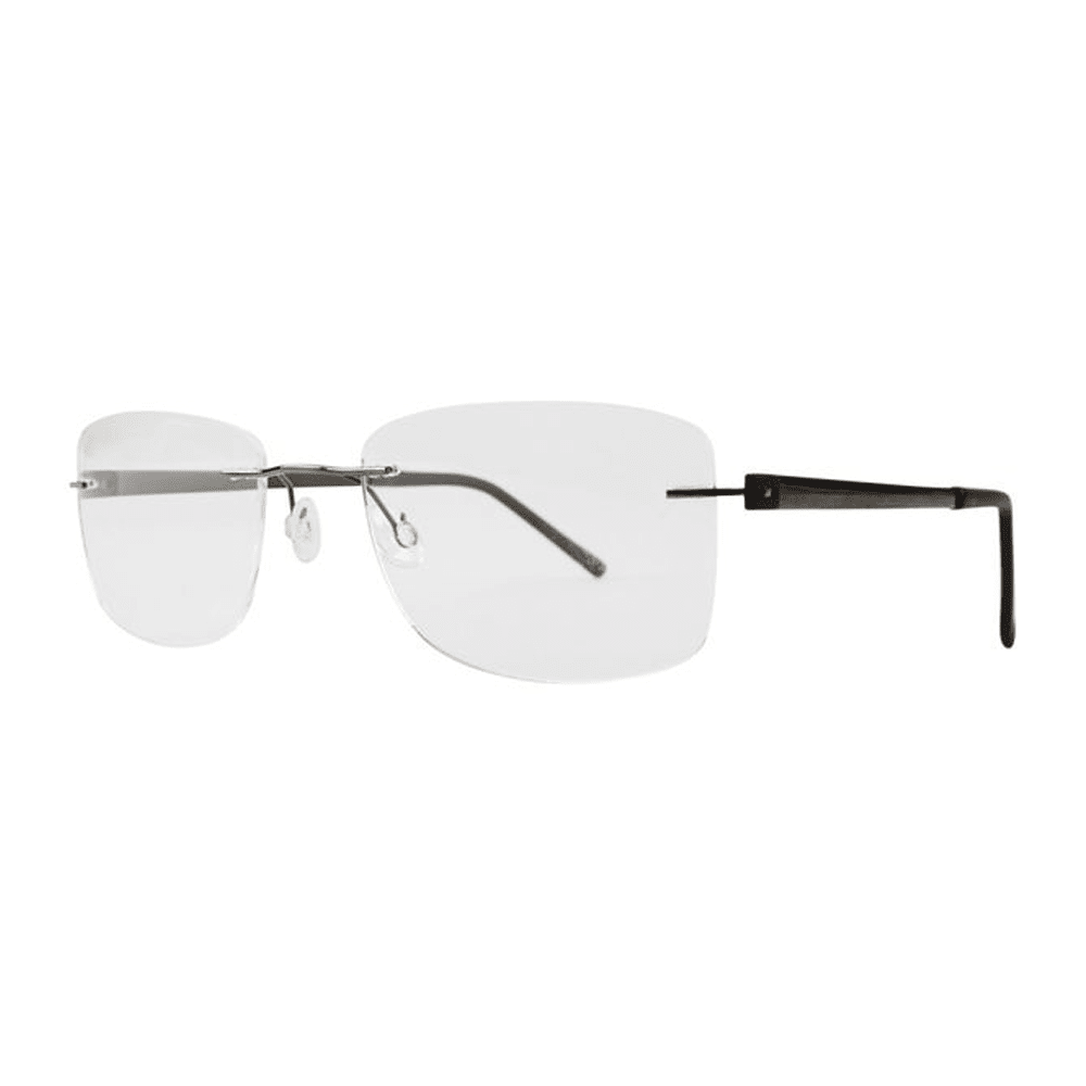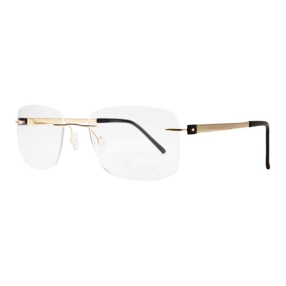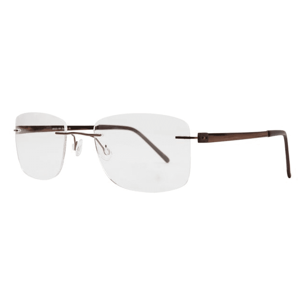 This rimless frame is sleek and stylish. The Titanium elements make it lightweight and robust. Available in;