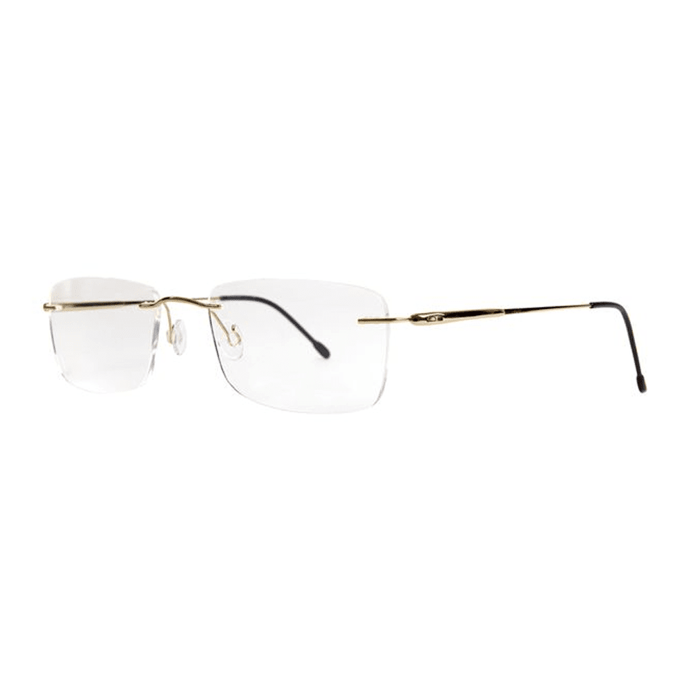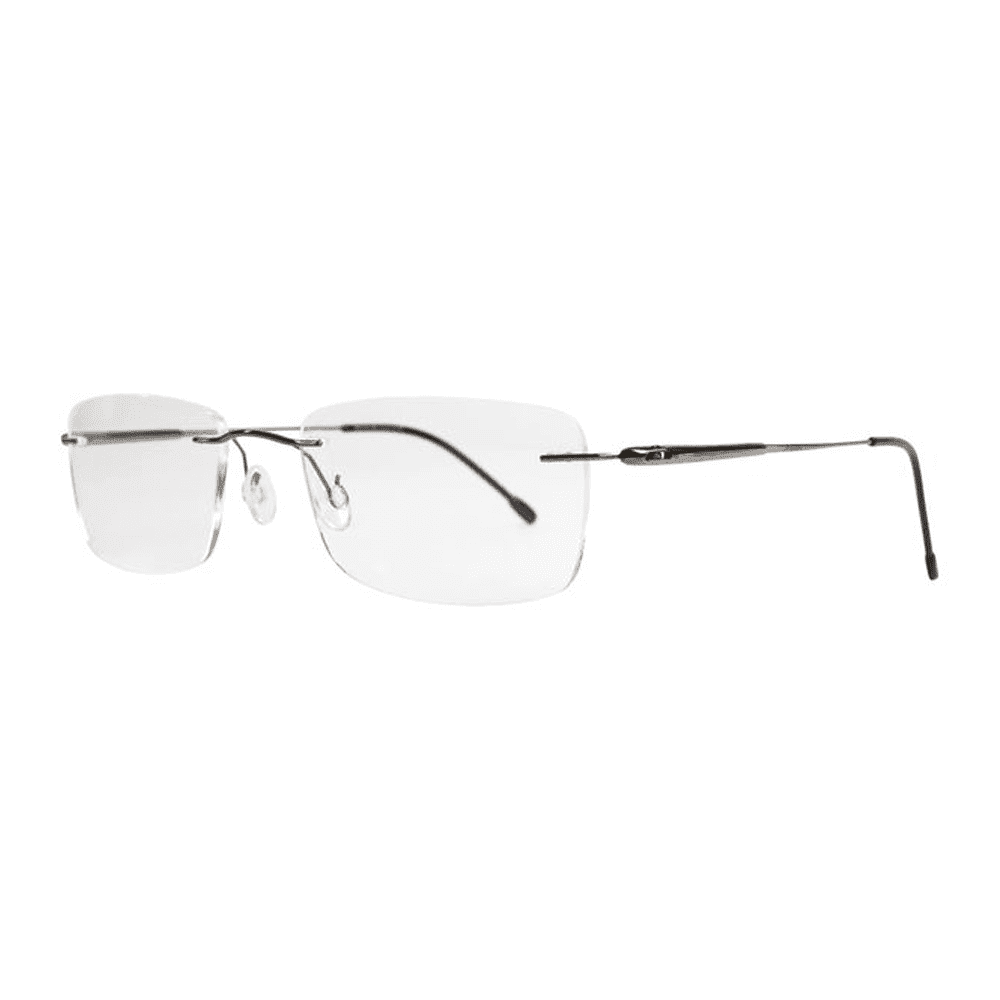 A lightweight resilient Titanium frame. A rimless rectangle shape. Available in;