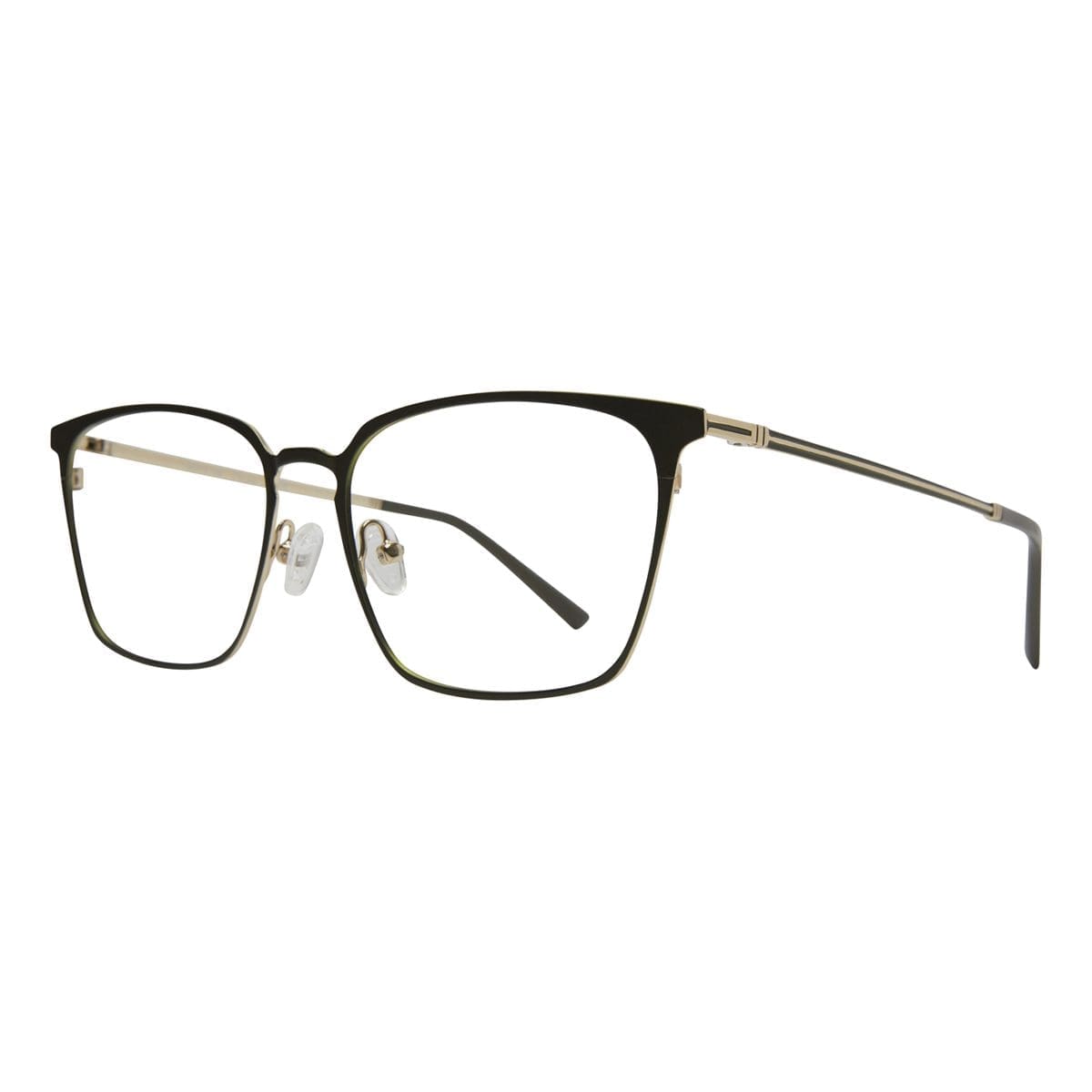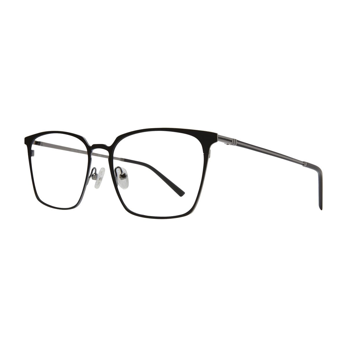 This frame features a large squared metal front, and stylish two tone metal sides. Available in;